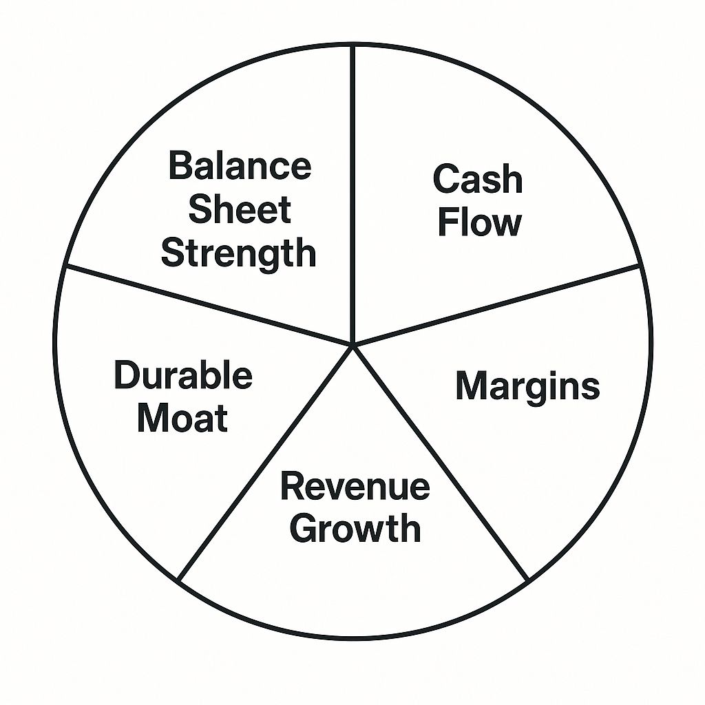 When you combine these metrics, you start to see the DNA of a potential winner. These metrics don’t work in isolation; they talk to each other. Rising margins often signal a moat forming. Strong cash flow growth strengthens the balance sheet. A healthy balance sheet gives a company room to protect its moat or weather downturns. And consistent revenue growth is what keeps all of it compounding.