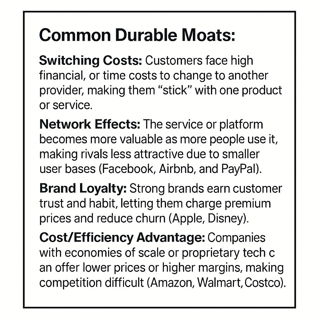 If it can’t be easily undercut or replaced, you’ll often see stable margins, pricing power, steady growth and market share dominance.
